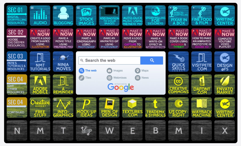 New Media Tools Symbaloo Mix was created by Pete Episcopo a Course Director.