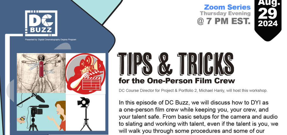 DC Buzz August Zoom Series: Tips and Tricks for the One-Person Film Crew